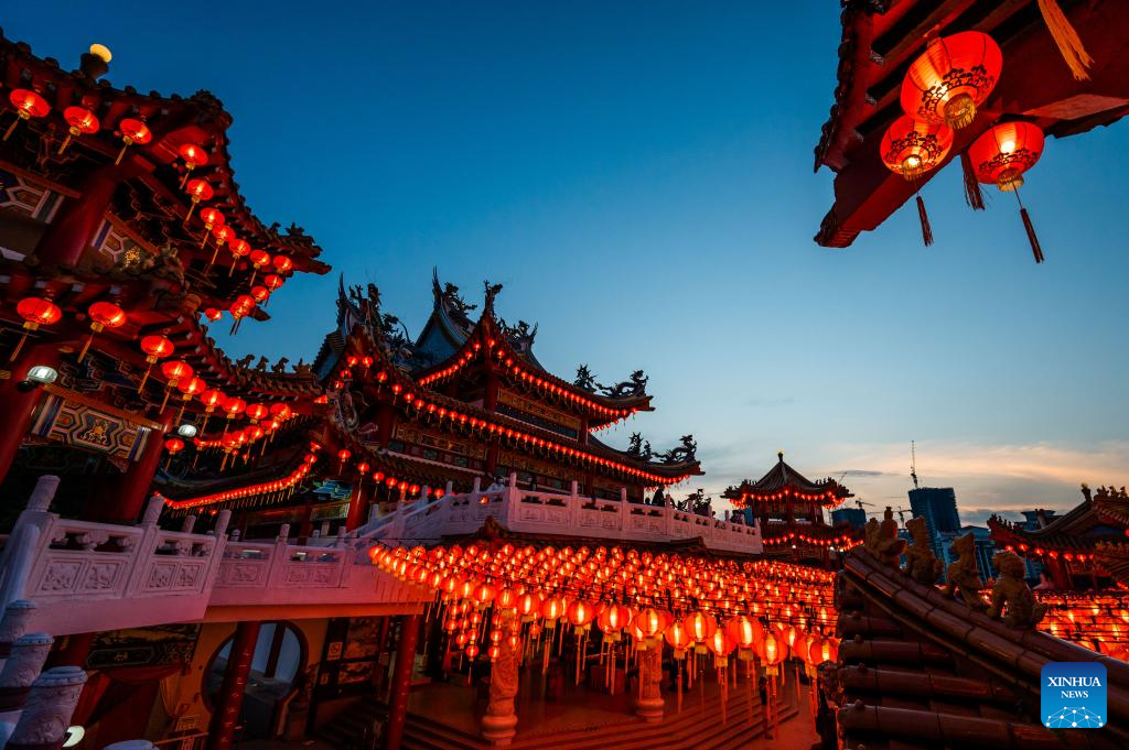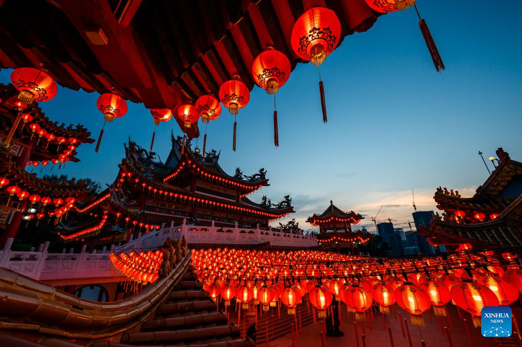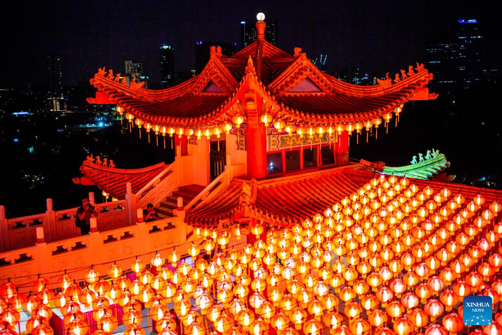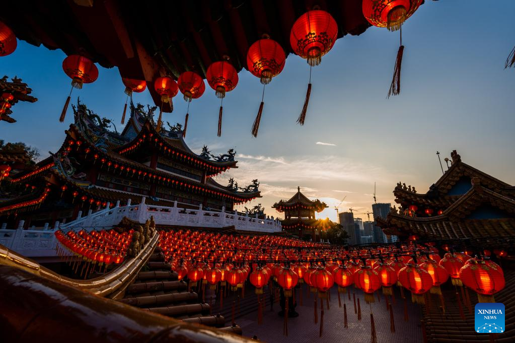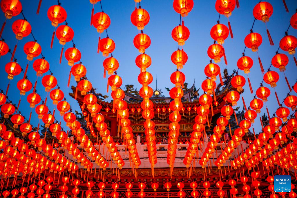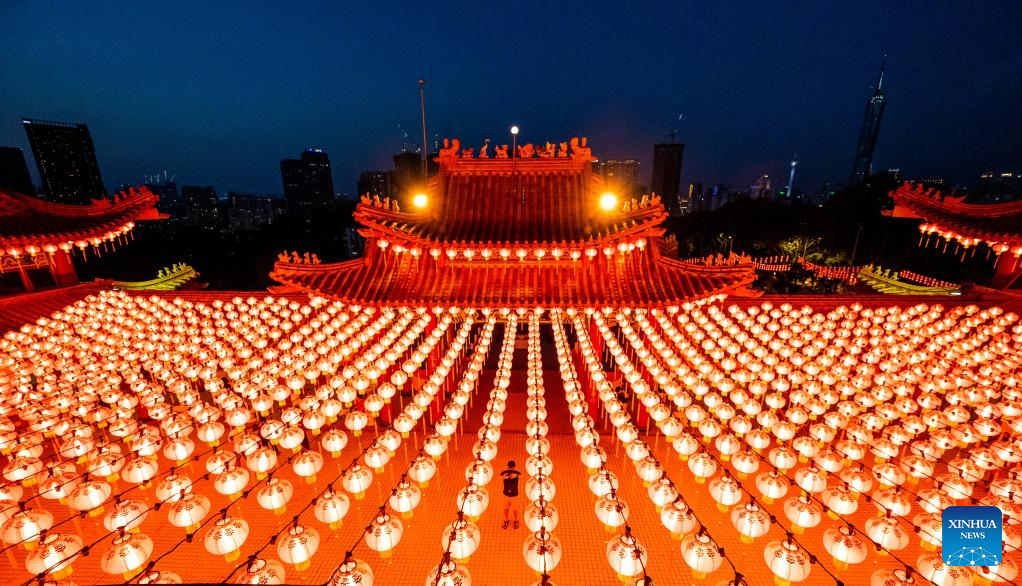 Red lanterns set for the upcoming Chinese Lunar New Year are seen at Thean Hou Temple in Kuala Lumpur, Malaysia, Jan. 22, 2022. (Xinhua/Zhu Wei)