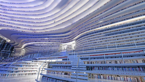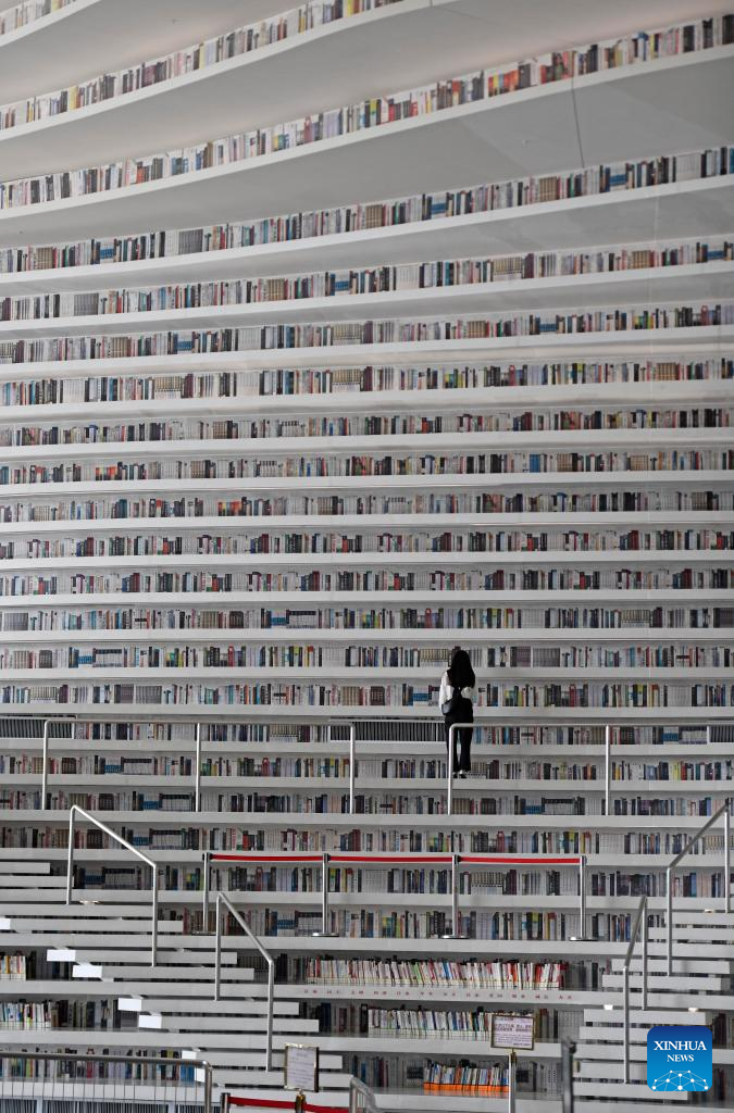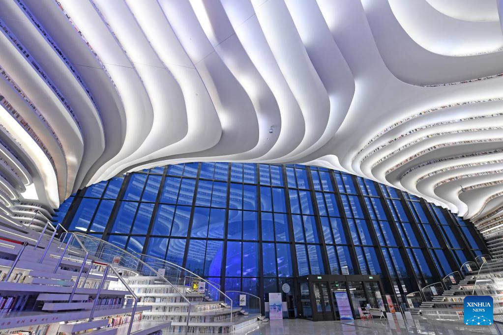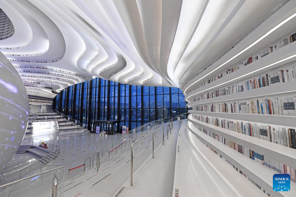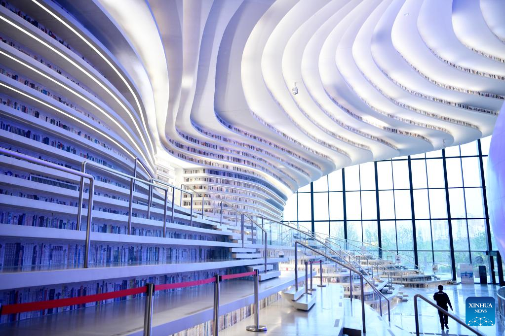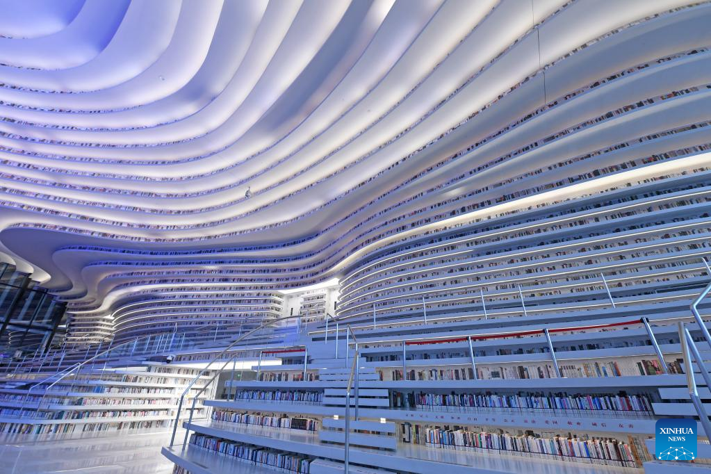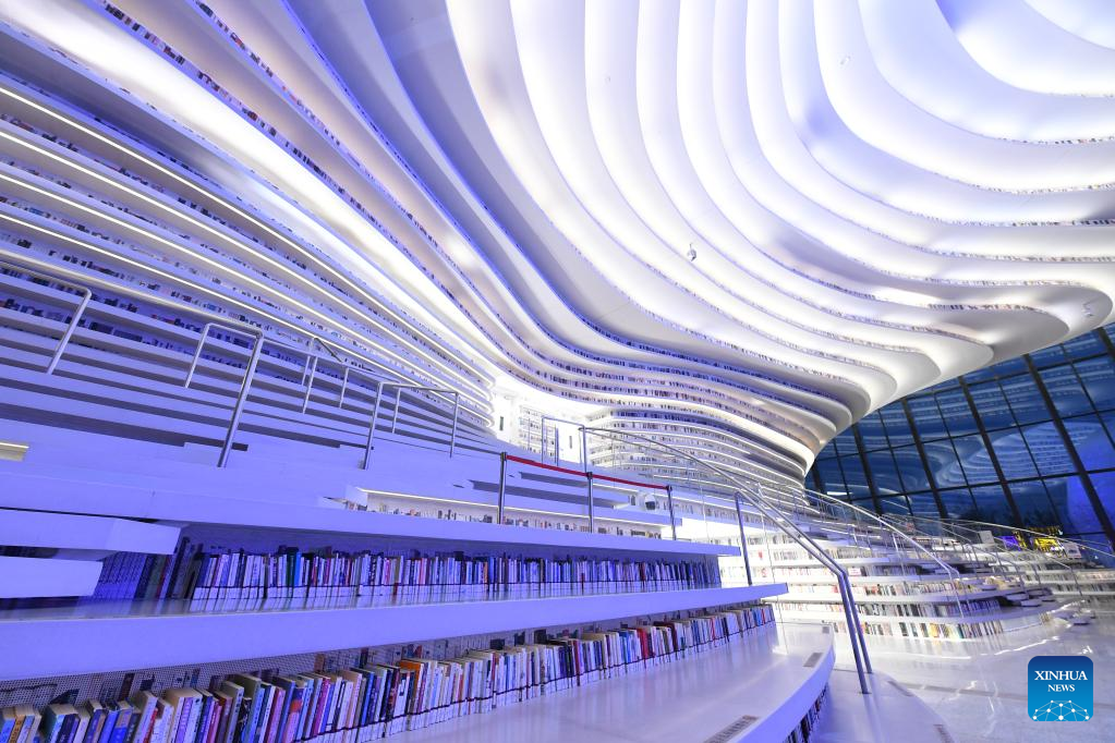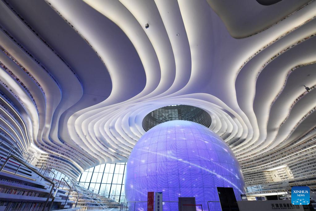 The library, a cultural landmark of Tianjin, officially opened to the public in October of 2017. Its stunning design has received a lot of attention from the public. (Xinhua/Zhao Zishuo)