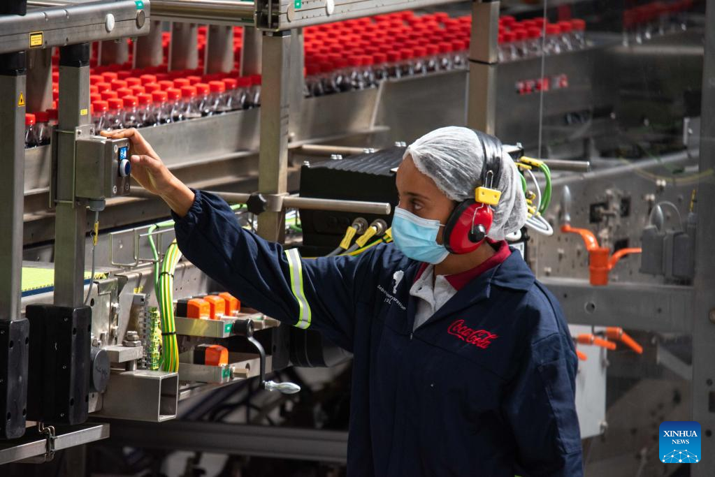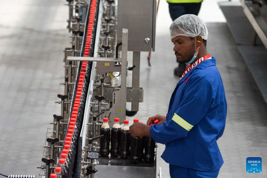 Employees work inside the Coca-Cola bottling plant in Sebeta town of Oromia regional state, Ethiopia, on May 31, 2022. The Coca-Cola Beverages Africa (CCBA) on Tuesday inaugurated its new 100 million U.S. dollars Coca-Cola bottling plant in Ethiopia. (Xinhua/Michael Tewelde)