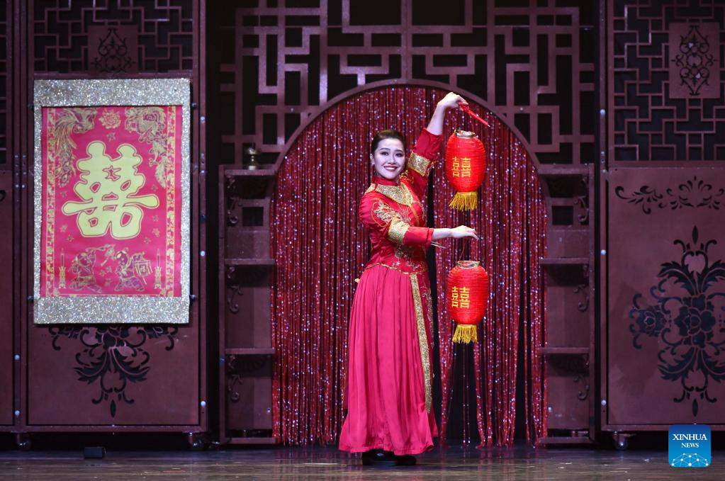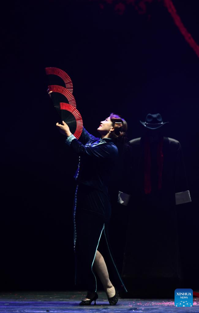 An actress performs magic on stage during the gala show of the 11th China Acrobatic Exhibition in Jinan, east China's Shandong Province, March 27, 2023. The 11th China Acrobatic Exhibition has been held from March 16 to 29 in Shandong. This year's event features a series of acrobatic and magic shows as well as acrobatic dramas. (Xinhua/Xu Suhui)