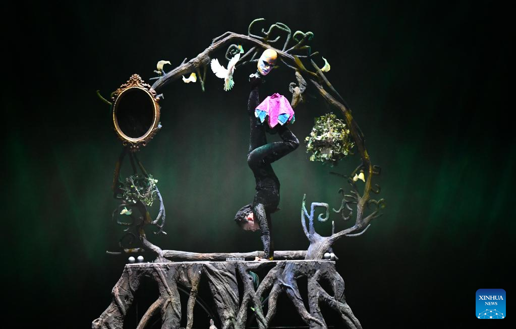 Actors perform magic on stage during the gala show of the 11th China Acrobatic Exhibition in Jinan, east China's Shandong Province, March 27, 2023. The 11th China Acrobatic Exhibition has been held from March 16 to 29 in Shandong. This year's event features a series of acrobatic and magic shows as well as acrobatic dramas. (Xinhua/Xu Suhui)