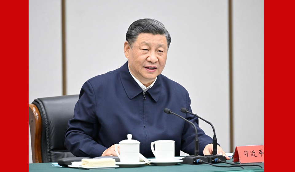 Chinese President Xi Jinping, also general secretary of the Communist Party of China Central Committee and chairman of the Central Military Commission, delivers an important speech while presiding over a meeting on advancing the high-quality construction of the Xiong'an New Area to a high standard in the Xiong'an New Area, north China's Hebei Province, May 10, 2023. Xi on Wednesday inspected Xiong'an in north China's Hebei Province and presided over a meeting on promoting its development. (Xinhua/Yin Bogu)
