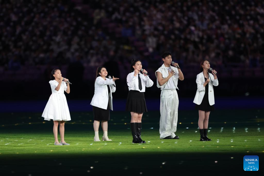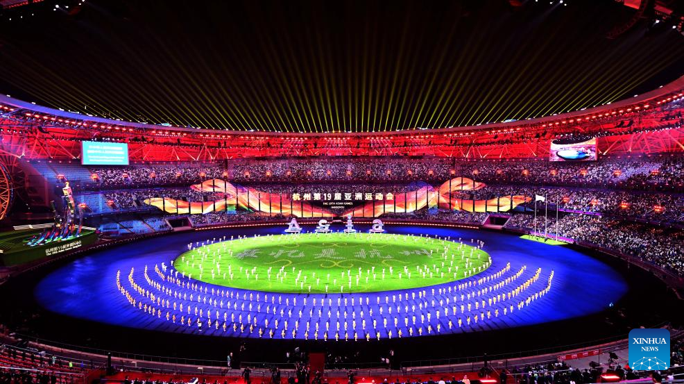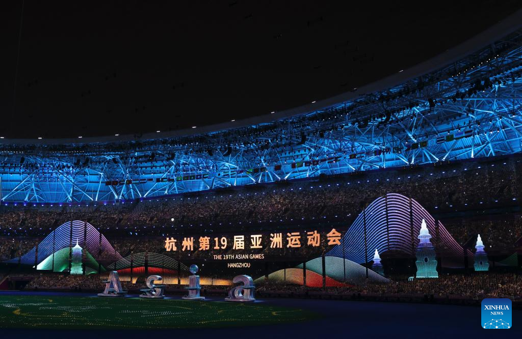 Artists perform during the closing ceremony of the 19th Asian Games at the Hangzhou Olympic Sports Center Stadium in Hangzhou, east China's Zhejiang Province, Oct. 8, 2023. (Xinhua/Xue Yuge)
