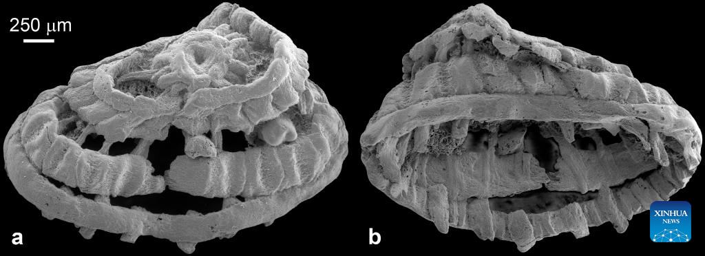 One of the three phosphatized and millimeter-scale specimens found in the south of Shaanxi Province is better preserved than the others, consisting of five increasingly large rings that are connected with 19 radial and 36 longitudinal structures, Zhang said.