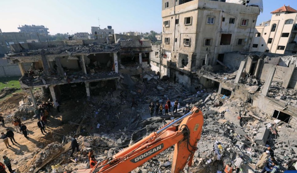 People conduct rescue work after an Israeli airstrike in the southern Gaza Strip city of Rafah, on Dec. 19, 2023. The death toll of Palestinians from Israeli attacks in the Gaza Strip has risen to 19,667, and 52,586 others were wounded since Oct. 7, the Hamas-run Health Ministry said on Tuesday. (Photo by Yasser Qudih/Xinhua)