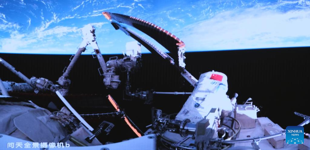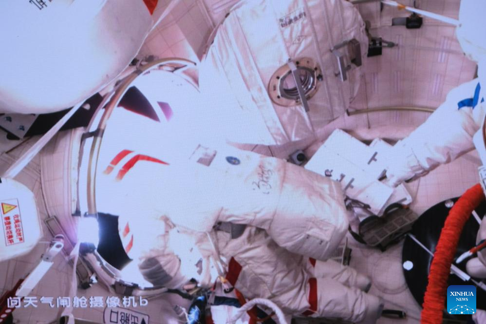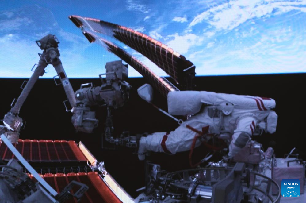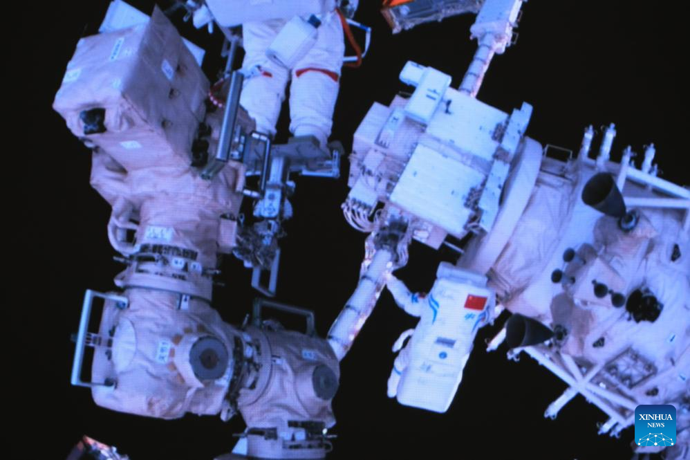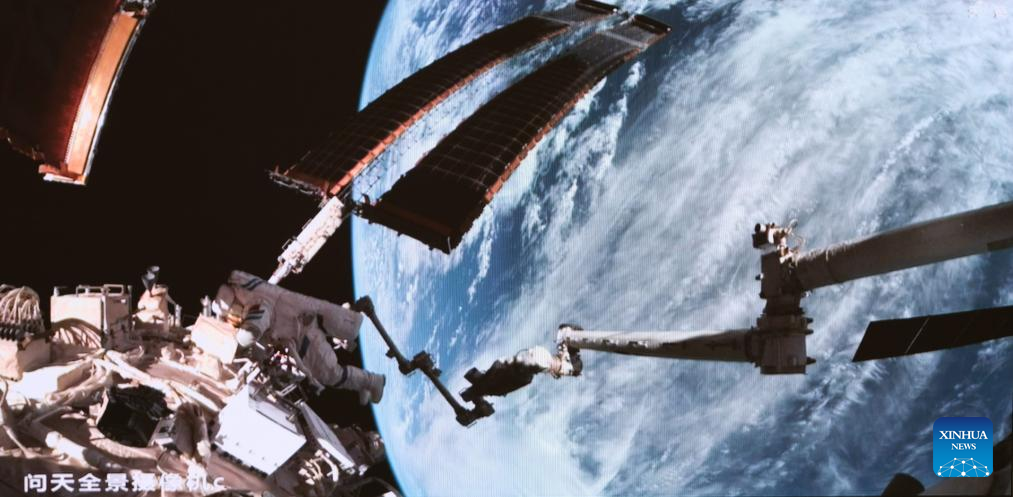 BEIJING, May 28 (Xinhua) -- Shenzhou-18 crew members on board China's orbiting space station completed the first spacewalk of their mission at 6:58 p.m. (Beijing Time) on Tuesday, according to the China Manned Space Agency (CMSA).