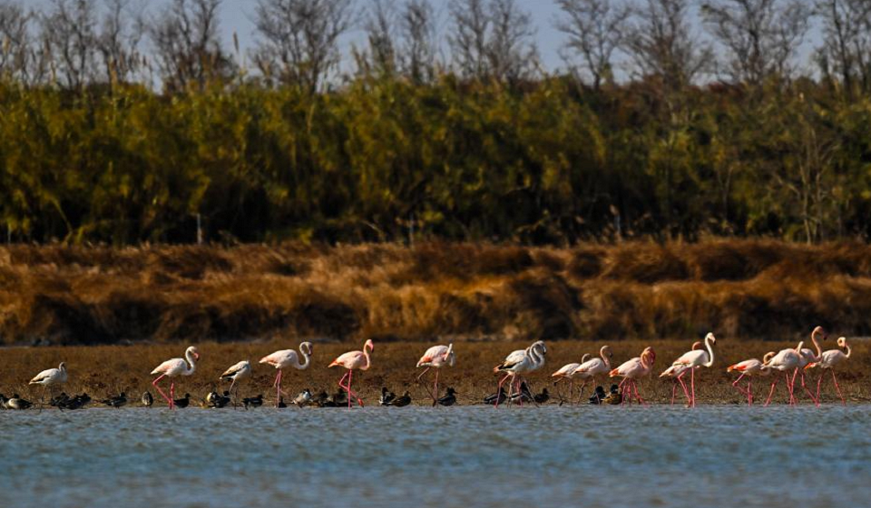 A drone photo taken on Jan. 4, 2025 shows birds flying at the Zhangjiangkou National Mangrove Nature Reserve in Yunxiao County, southeast China's Fujian Province. Located in the estuary of the Zhangjiang river, the Zhangjiangkou National Mangrove Nature Reserve covers an area of 2,360 hectares. It was listed as one of the Wetlands of International Importance under the Ramsar Convention on Wetlands in 2008. (Xinhua/Lin Shanchuan)