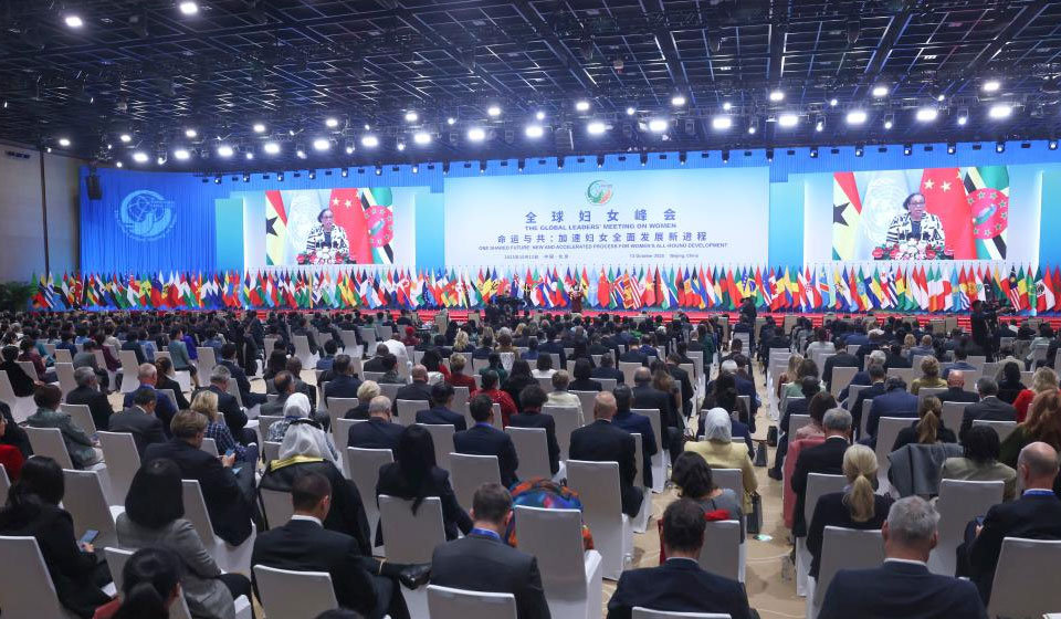 The opening ceremony of the Global Leaders' Meeting on Women is held in Beijing, capital of China, Oct. 13, 2025. The Global Leaders' Meeting on Women was held in Beijing on Monday. (Xinhua/Liu Weibing)