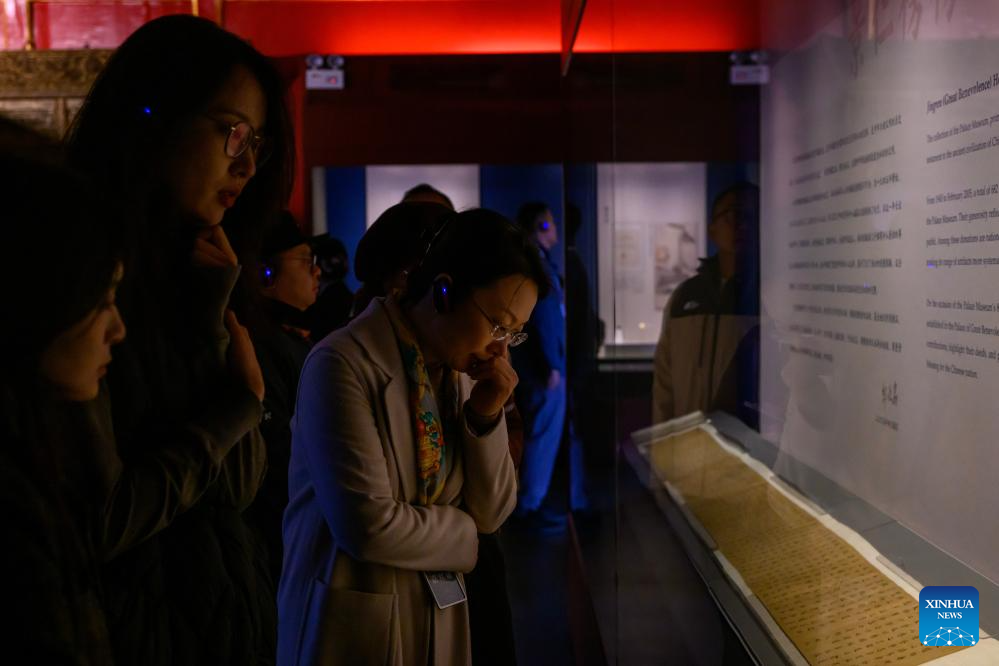 People visit the "Benevolence in Motion: Donated Artifacts in the Palace Museum" exhibition in Beijing, capital of China, Oct. 16, 2025. The expo kicked off here on Thursday. (Xinhua/Jin Liangkuai)