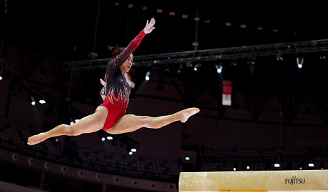 Zhang Qingying of China competes during the Women's Balance Beam Qualification at the 53rd FIG Artistic Gymnastics World Championships in Jakarta, Indonesia, on Oct. 21, 2025. (Xinhua/Cen Yunpeng)