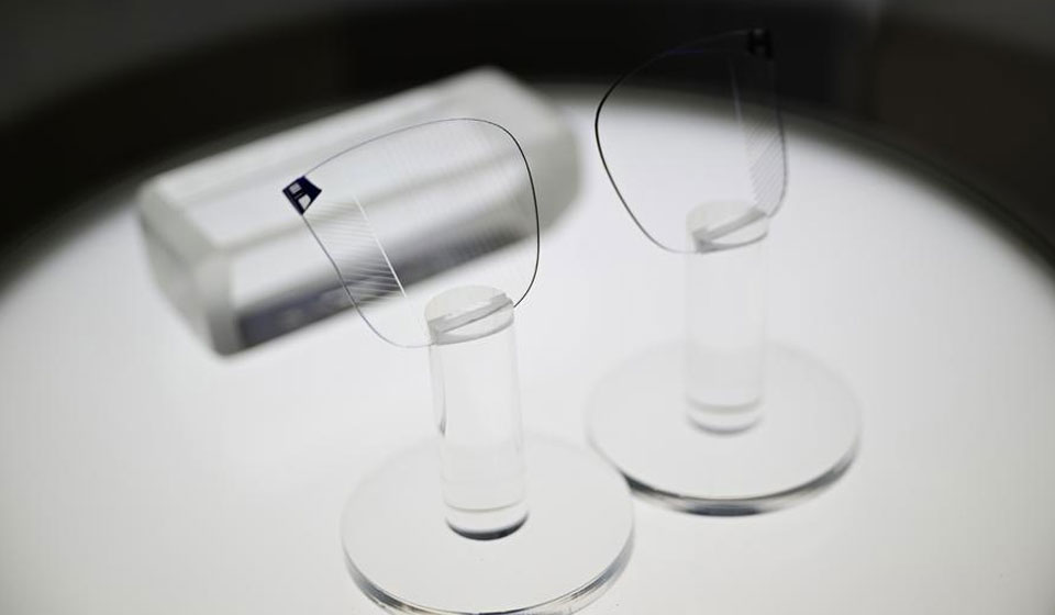 Lens for AR glasses are pictured at the Intelligent Industry and Information Technology exhibition area of the eighth China International Import Expo (CIIE) in east China's Shanghai, Nov. 6, 2025. (Xinhua/Cai Xiangxin)