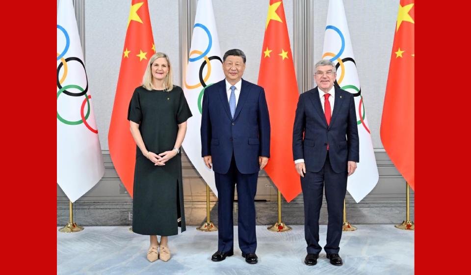 GUANGZHOU, Nov. 9 (Xinhua) -- Chinese President Xi Jinping on Sunday met with International Olympic Committee (IOC) President Kirsty Coventry and IOC Honorary President for Life Thomas Bach in Guangzhou, capital of south China's Guangdong Province.