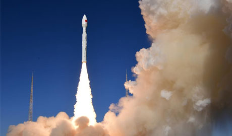 The rocket blasted off at 11:32 a.m. (Beijing Time) and successfully sent the satellites into the planned orbit. (Photo by Wang Jiangbo/Xinhua)