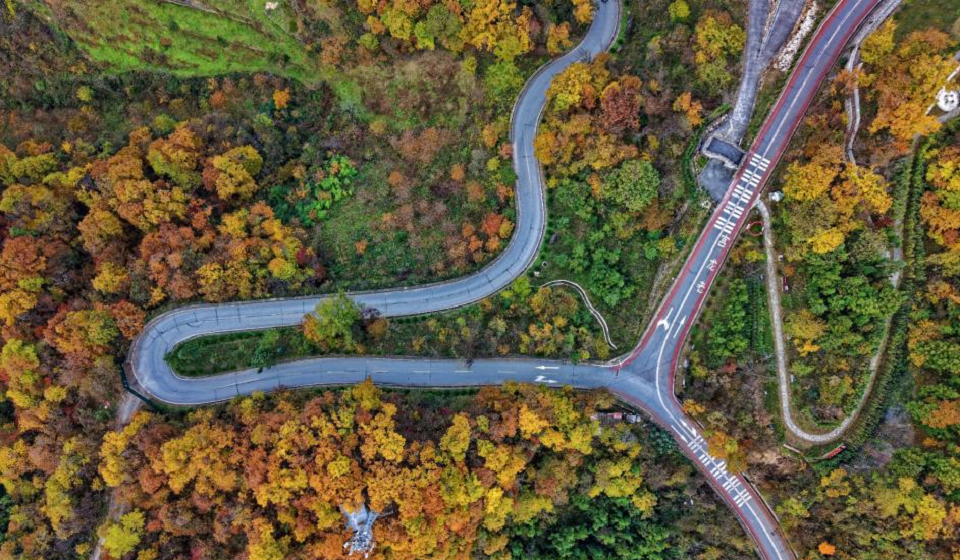 This aerial drone photo taken on Nov. 11, 2025 shows the scenery at a gingko scenic spot in Xiaopu Town, Changxing County, east China's Zhejiang Province. (Photo by Tan Yunfeng/Xinhua)