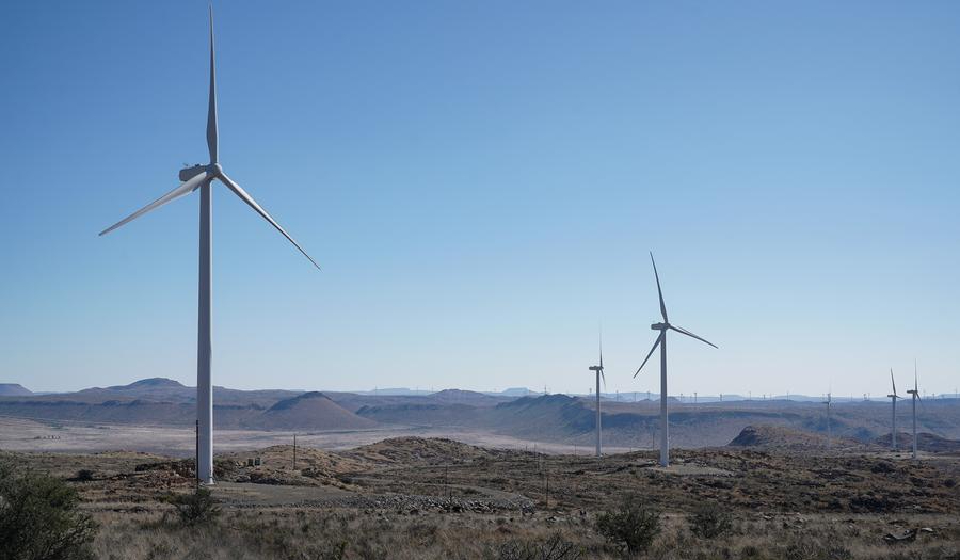 This photo taken on Oct. 22, 2025 shows wind turbines of De Aar Wind Power Project in De Aar, Northern Cape, South Africa. As the first wind power project financed, constructed and operated by a Chinese company in Africa, the De Aar Wind Farm supplies 760 million kilowatt-hours of clean electricity annually, meeting the electricity needs of 300,000 households. (Xinhua/Han Xu)