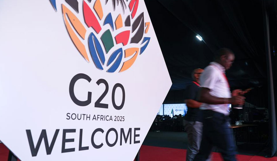 This photo taken on Nov. 17, 2025 shows a scene of the venue for the 20th Group of 20 (G20) Summit in Johannesburg, South Africa. (Photo by Shiraaz Mohamed/Xinhua)