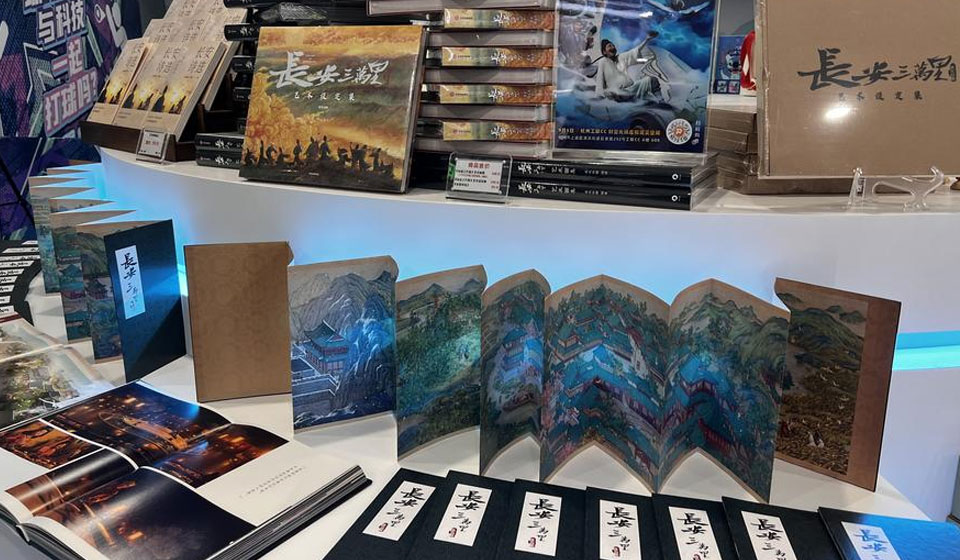 This photo taken on Nov. 14, 2025 shows creative products themed on "Chang An" displayed at a shop of Times Light Field in Gonglian City Center in Hangzhou, east China's Zhejiang Province. (Xinhua/Ji Hang)