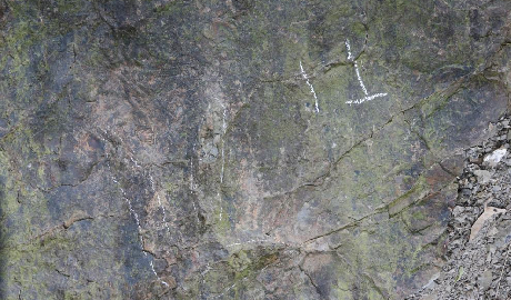 This photo taken on Dec. 5, 2025 shows dinosaur footprints on a rock wall in Dujiangyan City, southwest China's Sichuan Province. (Xinhua)