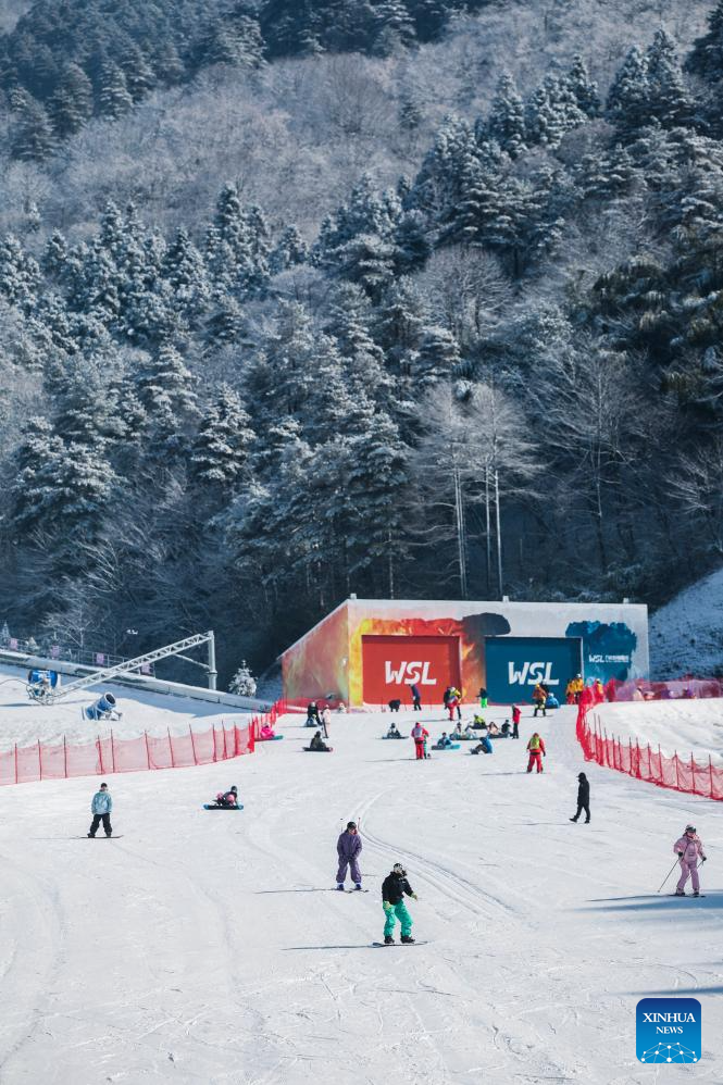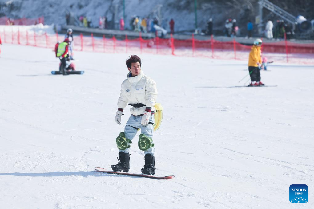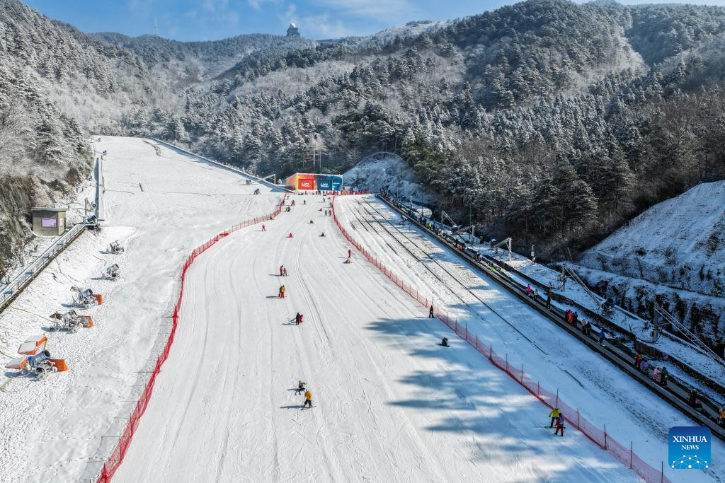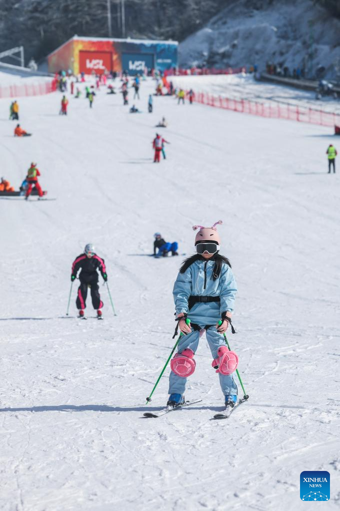 Tourists ski at the SkyLand ski resort in Anji County of Huzhou City, east China's Zhejiang Province on Dec. 28, 2025. Skiing and a variety of other winter sports have become a popular seasonal pastime for a growing number of people in Zhejiang Province. The province boasts many ice and snow resorts, both indoor and outdoor, providing ample choices for enthusiasts. Notable examples include the Wansongling Ski Resort in Hangzhou, Qiaobo Ice and Snow World in Shaoxing, Taihu Lake Longemont Paradise in Huzhou, SkyLand ski resort in Anji, and Pan'an ski Resort in Jinhua. Moreover, such facilities are increasingly taking root across the province.