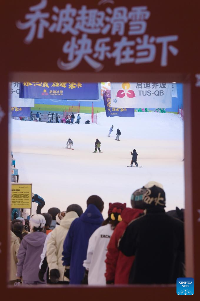 Tourists have fun at the Qiaobo Ice and Snow World in Shaoxing City, east China's Zhejiang Province, Dec. 24, 2025. Skiing and a variety of other winter sports have become a popular seasonal pastime for a growing number of people in Zhejiang Province. The province boasts many ice and snow resorts, both indoor and outdoor, providing ample choices for enthusiasts. Notable examples include the Wansongling Ski Resort in Hangzhou, Qiaobo Ice and Snow World in Shaoxing, Taihu Lake Longemont Paradise in Huzhou, SkyLand ski resort in Anji, and Pan'an ski Resort in Jinhua. Moreover, such facilities are increasingly taking root across the province.