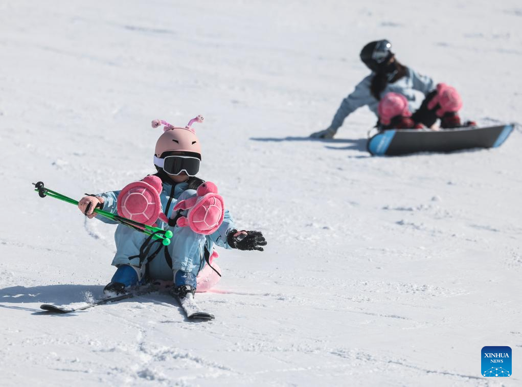 A child skis at the SkyLand ski resort in Anji County of Huzhou City, east China's Zhejiang Province on Dec. 28, 2025. Skiing and a variety of other winter sports have become a popular seasonal pastime for a growing number of people in Zhejiang Province. The province boasts many ice and snow resorts, both indoor and outdoor, providing ample choices for enthusiasts. Notable examples include the Wansongling Ski Resort in Hangzhou, Qiaobo Ice and Snow World in Shaoxing, Taihu Lake Longemont Paradise in Huzhou, SkyLand ski resort in Anji, and Pan'an ski Resort in Jinhua. Moreover, such facilities are increasingly taking root across the province.