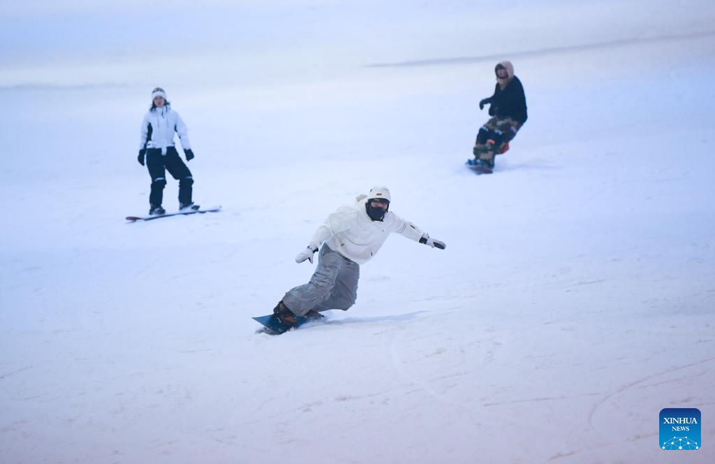 People ski at the ice and snow world of the Taihu Lake Longemont Paradise in Changxing County of Huzhou City, east China's Zhejiang Province, Dec. 29, 2025. Skiing and a variety of other winter sports have become a popular seasonal pastime for a growing number of people in Zhejiang Province. The province boasts many ice and snow resorts, both indoor and outdoor, providing ample choices for enthusiasts. Notable examples include the Wansongling Ski Resort in Hangzhou, Qiaobo Ice and Snow World in Shaoxing, Taihu Lake Longemont Paradise in Huzhou, SkyLand ski resort in Anji, and Pan'an ski Resort in Jinhua. Moreover, such facilities are increasingly taking root across the province.