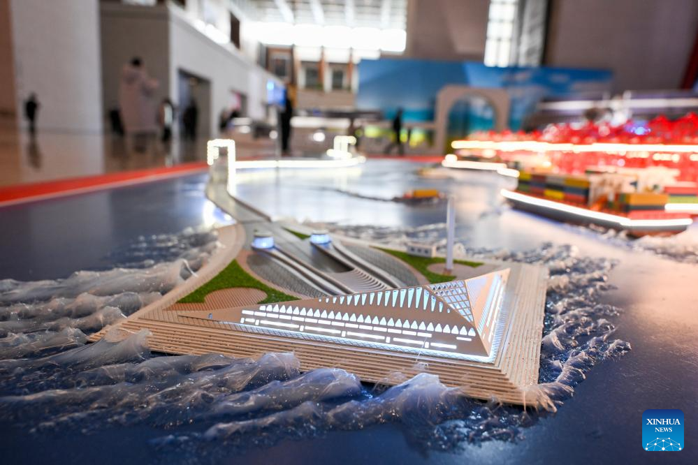 This photo taken on Dec. 29, 2025 shows a model of Shanghai's Yangshan Port at the exhibition "Forging the Path to National Strength: China's Manufacturing Achievements under the 14th Five-Year Plan" at the National Museum of China in Beijing, capital of China. With more than 300 pieces (sets) exhibits, the exhibition kicked off here on Monday, showcasing China's manufacturing achievements under the 14th Five-Year Plan. (Xinhua/Jin Liangkuai)