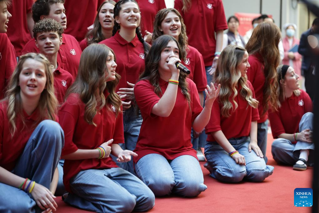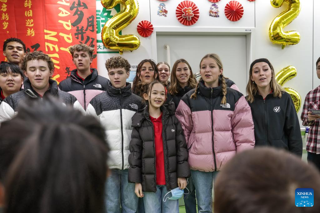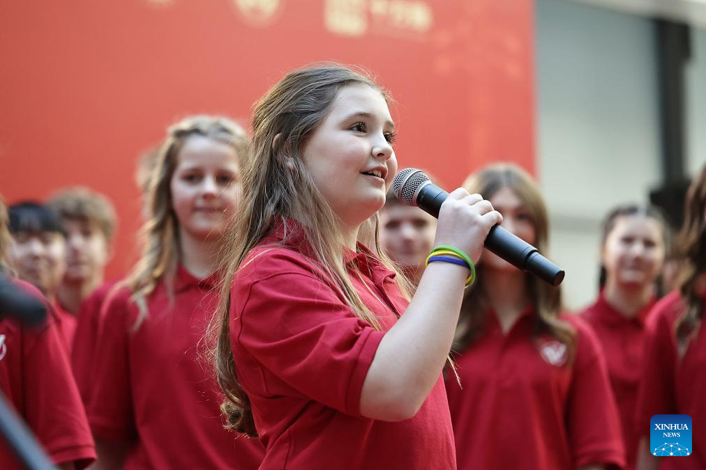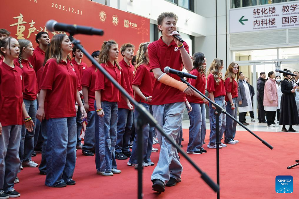 One Voice Children's Choir from the United States performs at the Peking Union Medical College Hospital (PUMCH) in Beijing, capital of China, Dec. 31, 2025. Fifty-six young performers from One Voice Children's Choir along with invited musicians gave a performance at the hospital on Wednesday. (Xinhua/Zhang Yuwei)