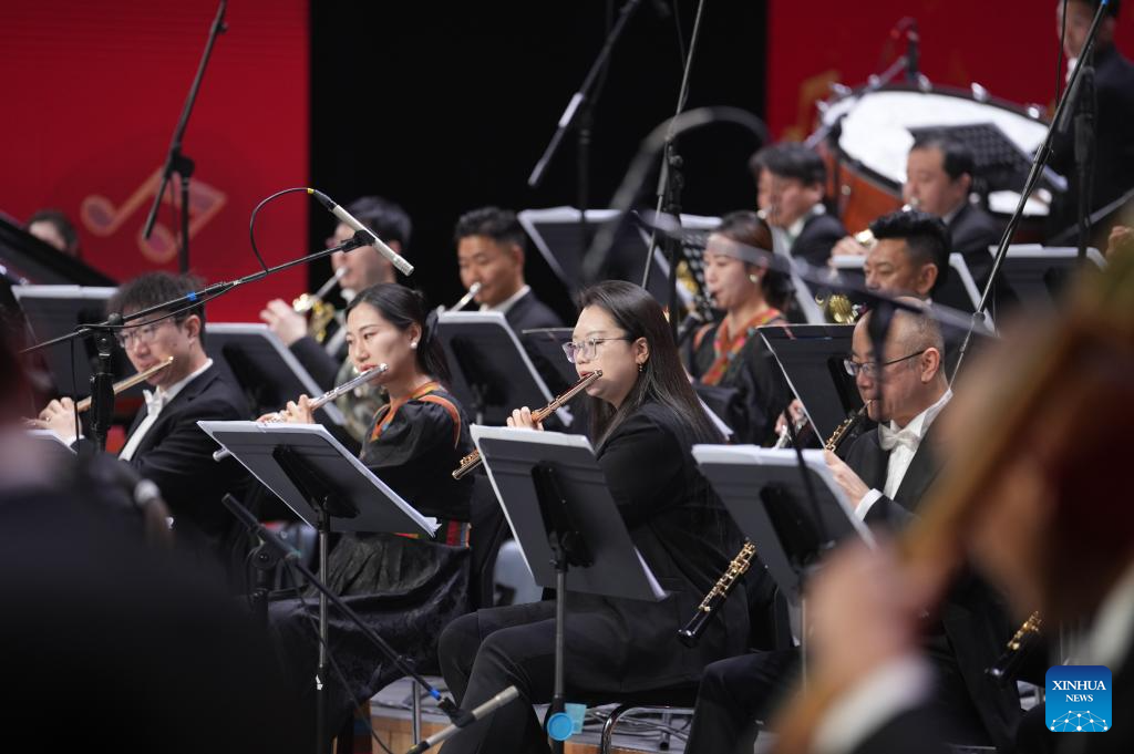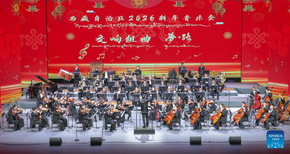 Musicians perform at a New Year concert held at Xizang grand theater in Lhasa, southwest China's Xizang Autonomous Region, on Dec. 30, 2025. (Xinhua/Jigme Dorje)