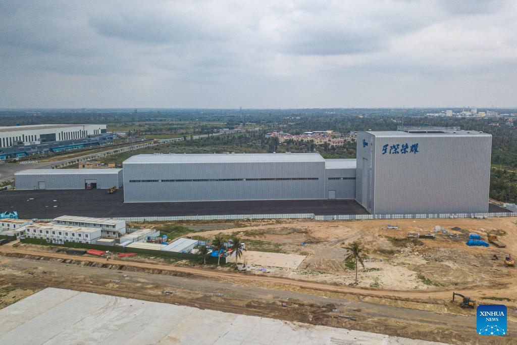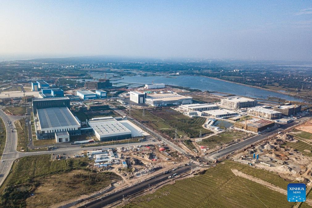 An aerial drone photo taken on Dec. 26, 2025 shows a view of the aerospace industrial cluster under construction, with the Hainan commercial spacecraft launch site and the Wenchang Spacecraft Launch Site in the background, in Wenchang, south China's Hainan Province. (Xinhua/Pu Xiaoxu)