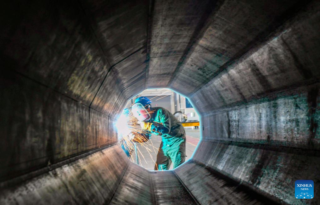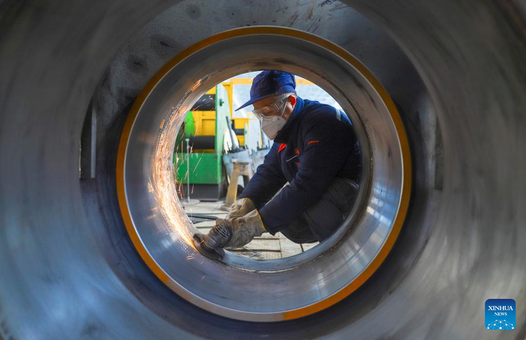 A worker operates at a workshop in Tangshan Port economic development zone in Tangshan, north China's Hebei Province, Jan. 4, 2026. (Photo by Liu Mancang/Xinhua)
