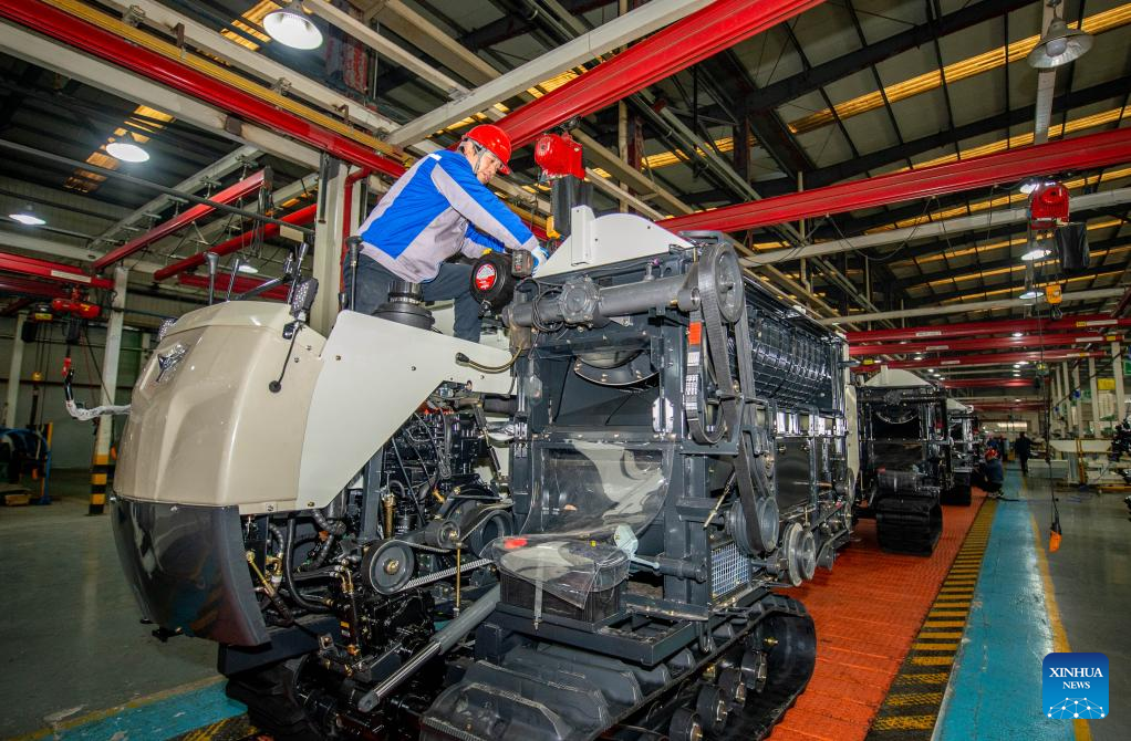 A worker operates at an assembly workshop of a company in Hailing District of Taizhou, east China's Jiangsu Province, Jan. 4, 2026. (Photo by Yang Yugang/Xinhua)