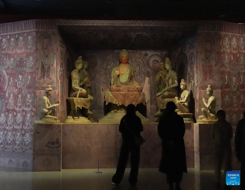 People visit the "Dunhuang in Glazes" exhibition at the Jiangxi provincial art museum in Nanchang, east China's Jiangxi Province, Dec. 19, 2025. (Xinhua/Zhou Mi)