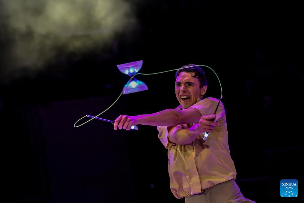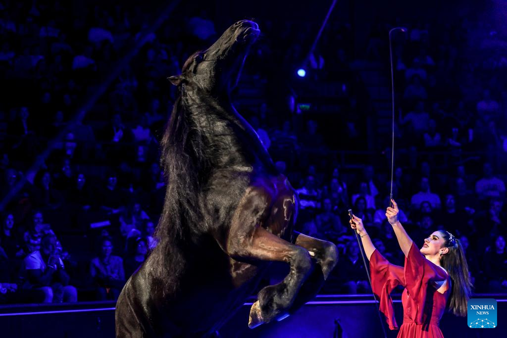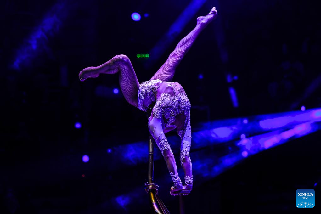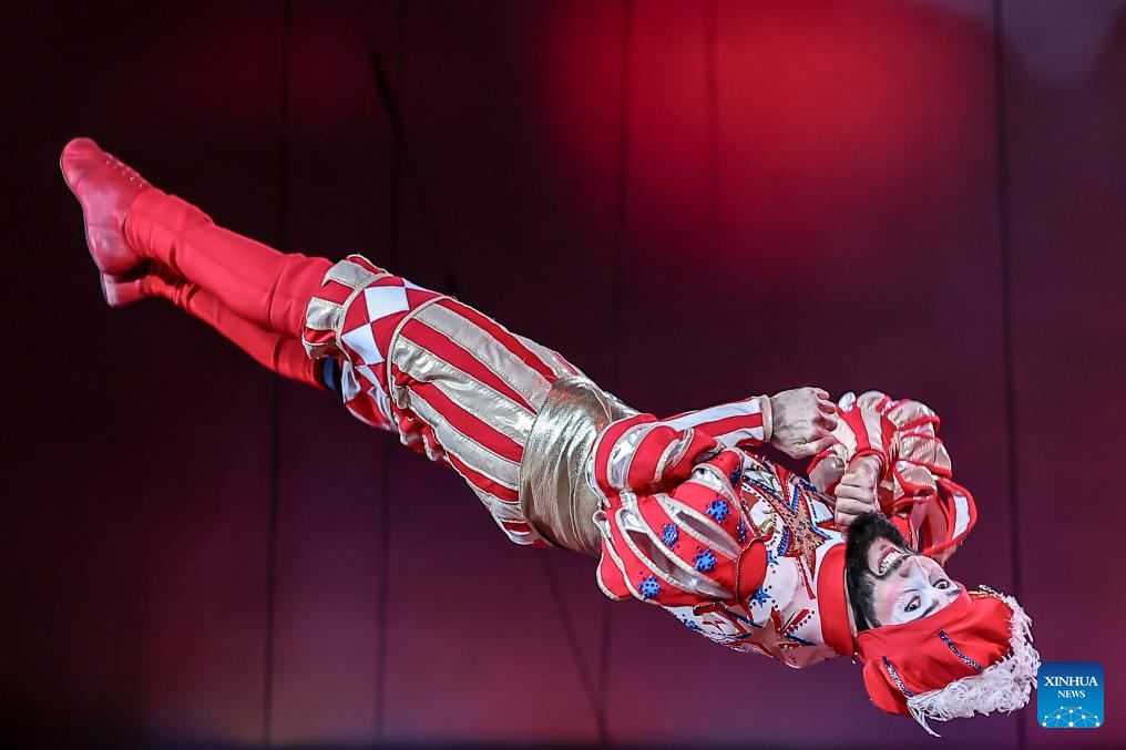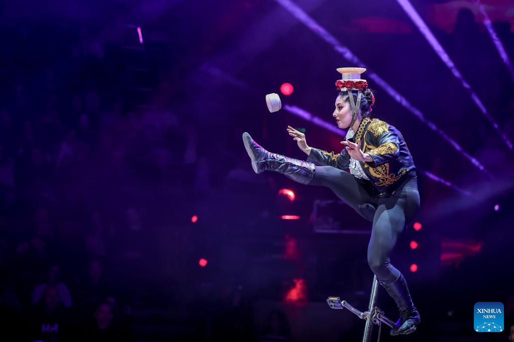 Artists perform during the gala show of the 16th Budapest International Circus Festival in Budapest, Hungary, on Jan. 12, 2026. (Photo by David Balogh/Xinhua)