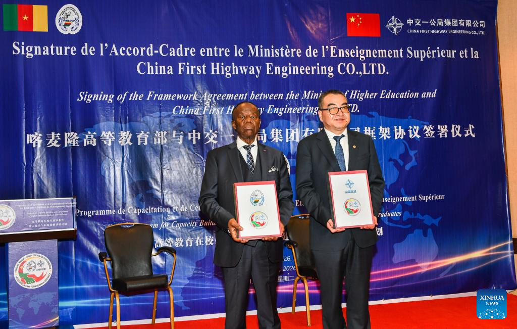 YAOUNDE, Jan. 13 (Xinhua) -- Cameroon's Ministry of Higher Education on Tuesday signed a framework partnership agreement with China First Highway Engineering Co., Ltd. (CFHEC) to promote professionalism in university education and improve graduate employability.