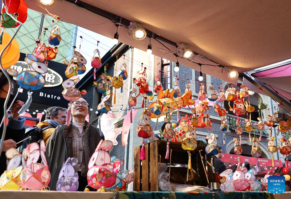 Tourists view traditional lanterns displayed during a New Year floral fair in Shanghai, east China, Jan. 23, 2026. Chinese people across the country are busy preparing fresh flowers, Chinese knots, spring couplets, and other traditional necessities to celebrate the upcoming Spring Festival, or the Chinese New Year. (Xinhua/Fang Zhe)