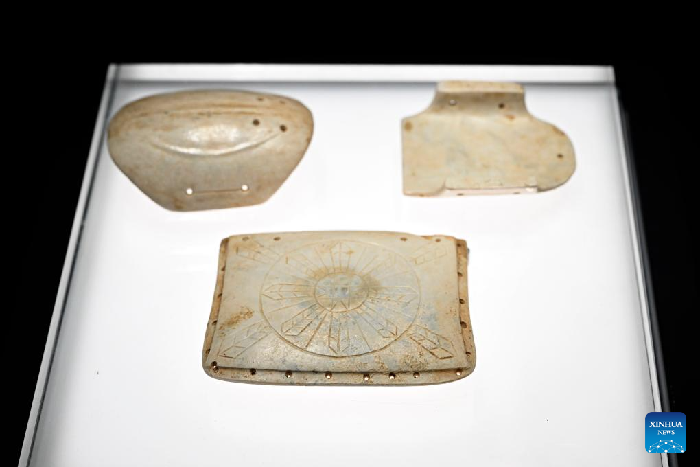 This photo taken on Dec. 24, 2025 shows jade artifacts on display at the Lingjiatan Site Museum in Hanshan County, Ma'anshan, east China's Anhui Province. Dating back some 5,300 to 5,800 years, the Lingjiatan relic site in east China's Anhui was discovered in 1985. It is known for the jadeware unearthed there. The findings include jade artifacts in various shapes, offering a peek into the spirits and aesthetics of a prehistoric Chinese jade culture. (Xinhua/Huang Bohan)