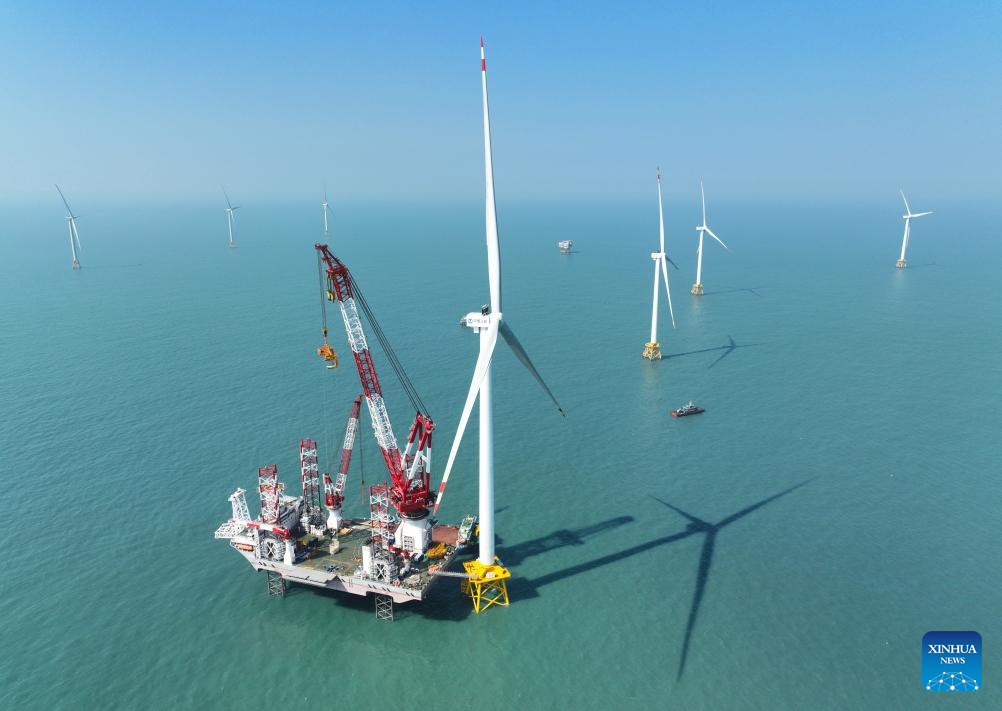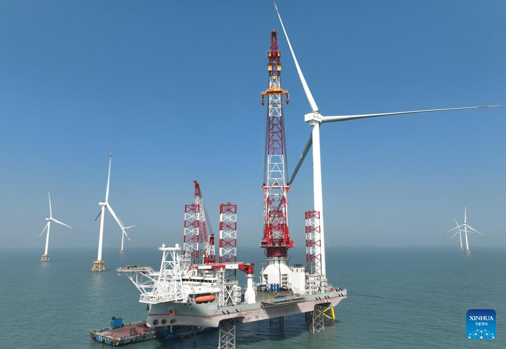 BEIJING, Feb. 6 (Xinhua) -- The world's most powerful offshore wind turbine has begun feeding electricity into the grid off the coast of southeast China, marking a major technological leap in the country's wind power industry.