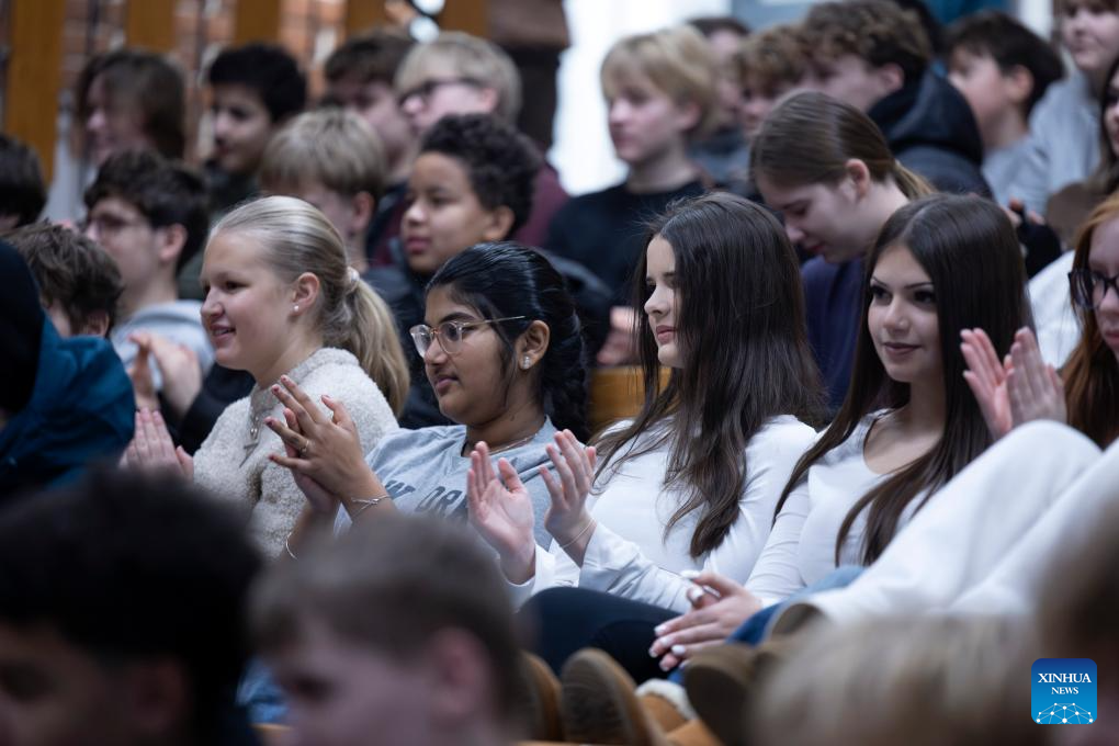 Students watch a performance during a "Happy Chinese New Year" campus event at Kulosaari Secondary School in Helsinki, Finland, Feb. 13, 2026. A lively "Happy Chinese New Year" campus event was held at Kulosaari Secondary School in Helsinki on Friday. (Photo by Matti Matikainen/Xinhua)