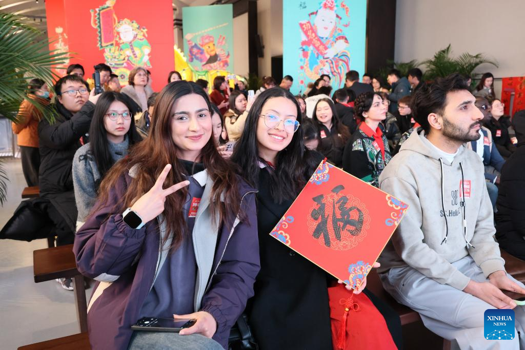 At the Feng Jicai Museum at Tianjin University, in north China's Tianjin Municipality, dozens of international students found themselves immersed in the jubilant ambiance, surrounded by lanterns and traditional decorations.