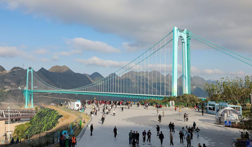 The Huajiang Grand Canyon Bridge in southwest China's Guizhou Province, recognized as the world's highest bridge, attracted over 300,000 visitors in just nine days from Feb. 15 to 23, with 75 percent being self-driving tourists and more than half of them from other provinces.