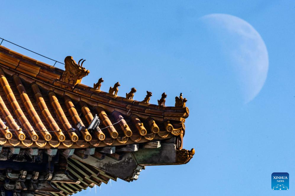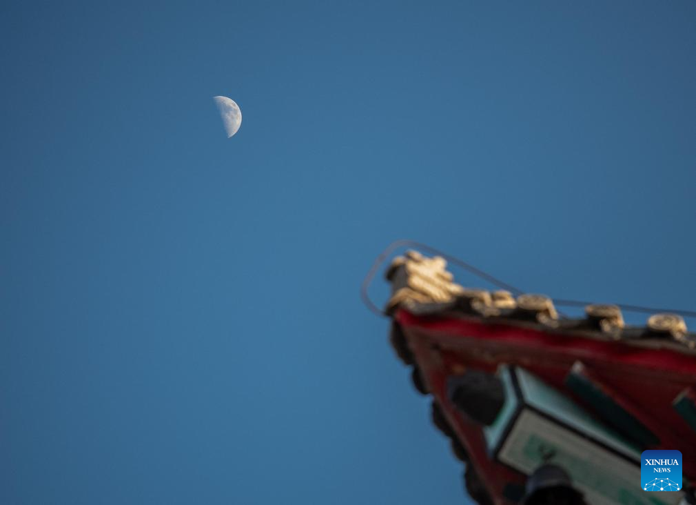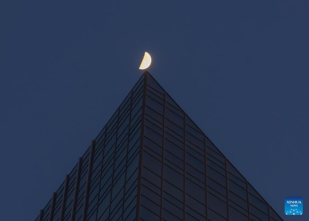 This photo taken on Feb. 24, 2026 shows the moon over Harbin City, northeast China's Heilongjiang Province. The largest first quarter moon of the year appeared in the sky on Tuesday. The moon was near its perigee in orbit, approximately 370,000 kilometers from the Earth. (Photo by Zhang Shu/Xinhua)