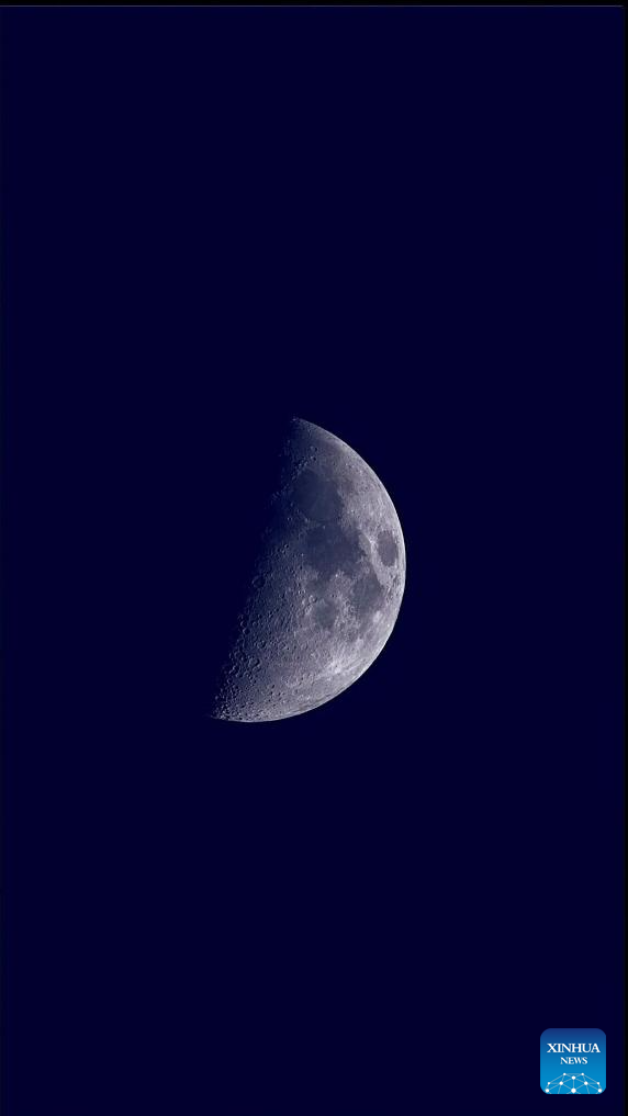 The moon is photographed through an intelligent astronomical telescope in Beijing, capital of China, Feb. 24, 2026. The largest first quarter moon of the year appeared in the sky on Tuesday. The moon was near its perigee in orbit, approximately 370,000 kilometers from the Earth. (Xinhua/Xing Guangli)