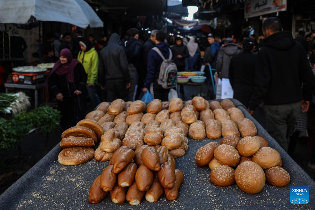 Palestinians shop at a market in the Gaza City during the holy month of Ramadan, Feb. 24, 2026. (Photo by Rizek Abdeljawad/Xinhua)