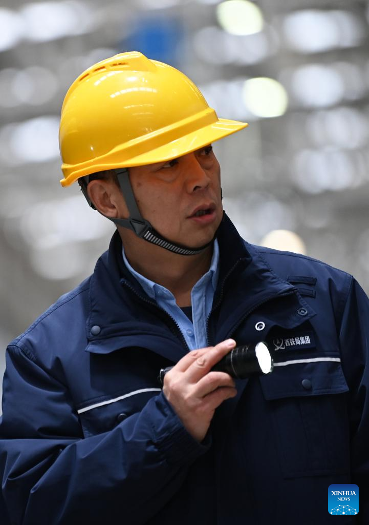 Dong Hongtao poses for a photo at a maintenance depot of China Railway Xi'an Group Co., Ltd. in Xi'an, northwest China's Shaanxi Province, Jan. 14, 2026. (Xinhua/Li Yibo)