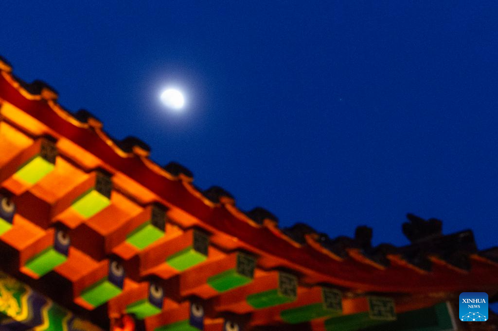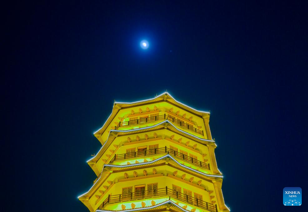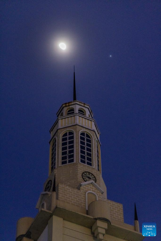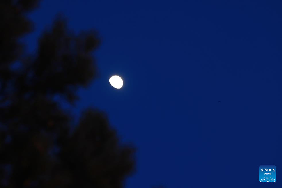 This photo taken on Feb. 27, 2026 shows the planet of Jupiter next to the moon in the sky over Qiqihar City, northeast China's Heilongjiang Province. (Photo by Wang Yonggang/Xinhua)