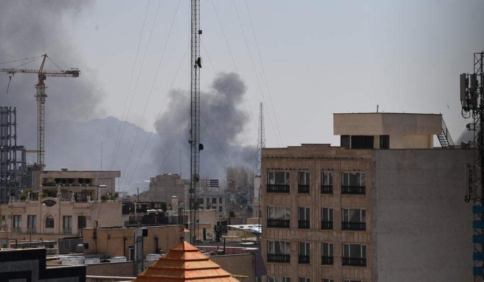 This photo, taken on March 1, 2026, shows smoke rising in Tehran, Iran. On Sunday evening, Iran's state-run IRIB TV reported that the United States and Israel had attacked parts of the organization in Tehran. A major hospital in Tehran was also targeted by strikes. (Xinhua/Shadati)