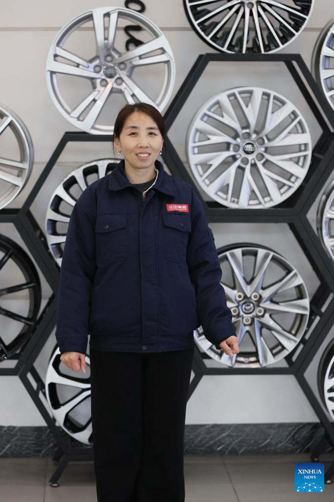 Guo Hongjing poses for a photo at Tianjin Lizhong Wheel Co., Ltd. in north China's Tianjin, Feb. 25, 2026. (Xinhua/Li Ran)