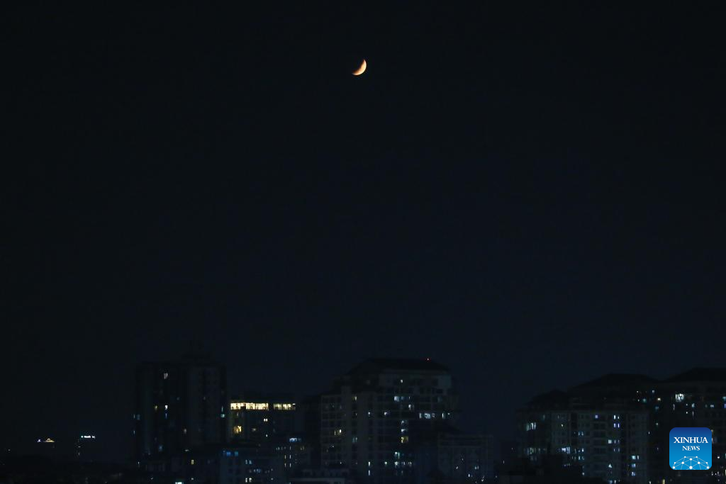 The moon is seen during a lunar eclipse over Yangon, Myanmar, March 3, 2026. (Xinhua/Myo Kyaw Soe)
