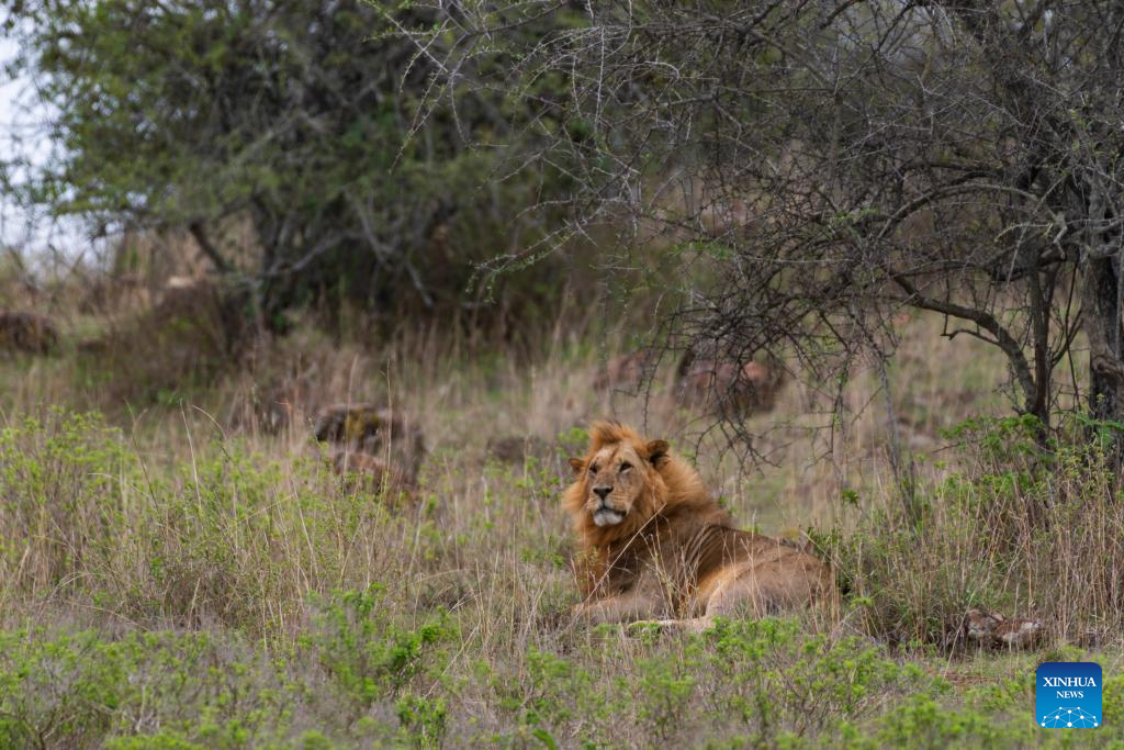 This photo taken on March 2, 2026 shows a lion at the Lake Nakuru National Park in Nakuru County, Kenya.